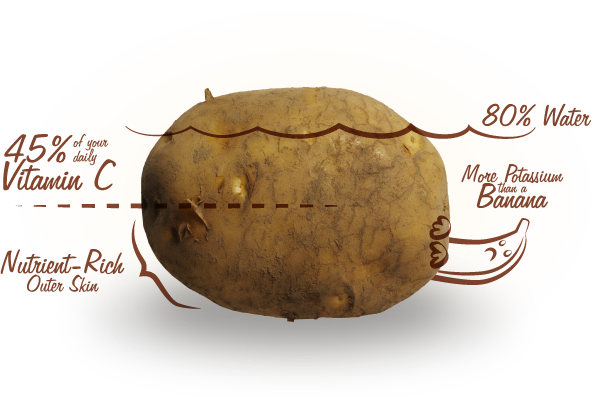 One medium-size potato has just 110 calories and is absolutely fat-free, sodium and cholesterol free, making them downright undeniable for any diet. The power of the potato doesn’t stop there.