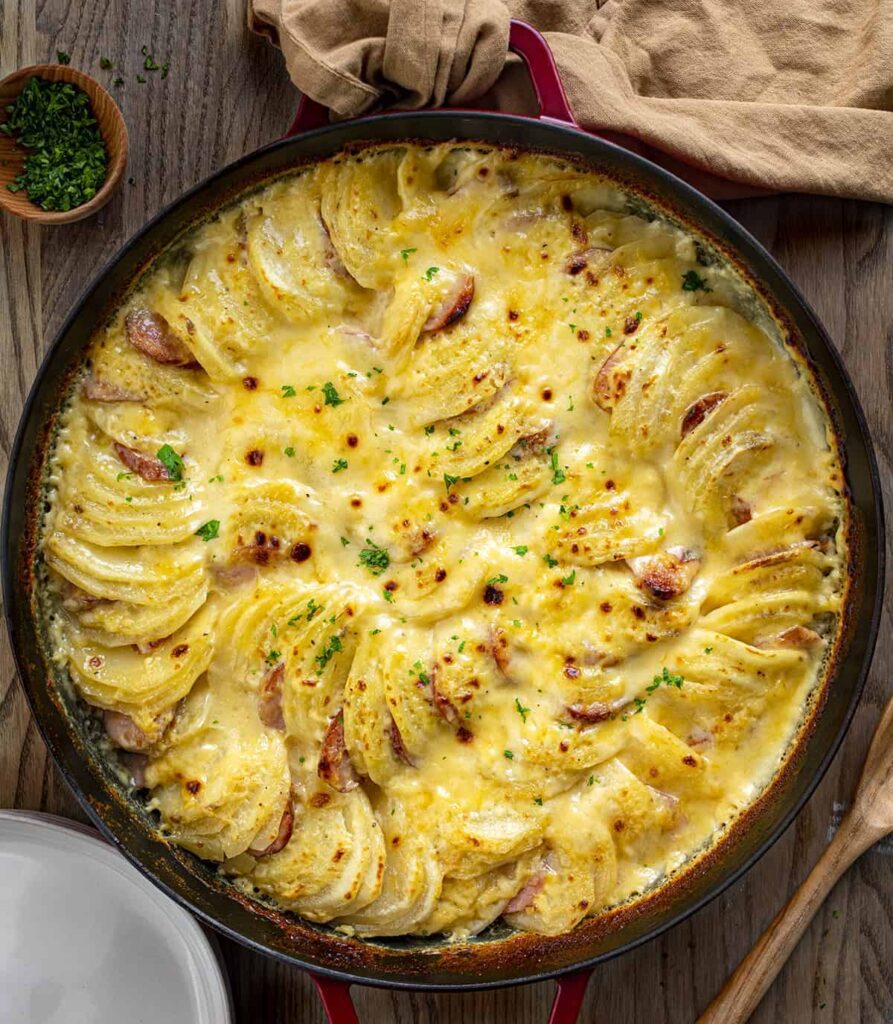 Place raw clams on top of potatoes, add butter and simmer over low heat for 20 minutes.
